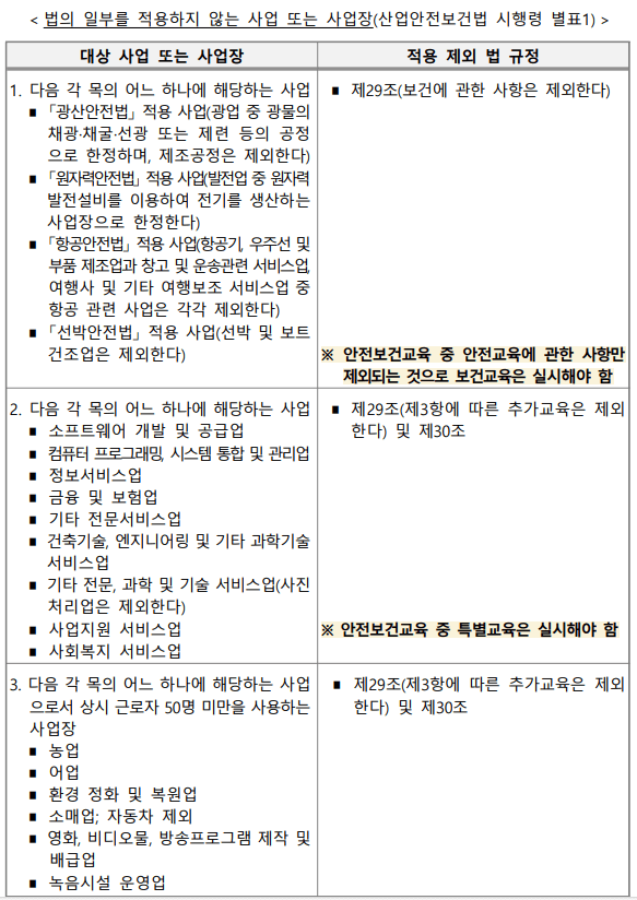 교육 대상 제외 사업장