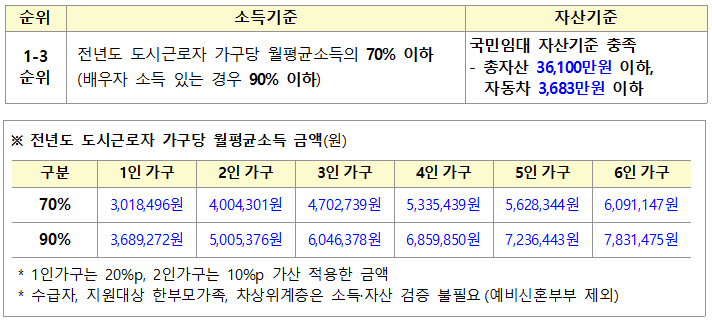 1. 임대자격 : 공고일 기준 무주택세대구성원으로서 신혼부부 I형의 소득 및 자산기준 충족한 자로 ①~④ 중 1