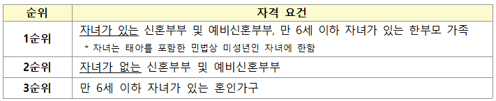 ※ 자녀가 있는 경우 자격 충족 시 최장 10년 거주(재계약 2회 추가 연장 가능)