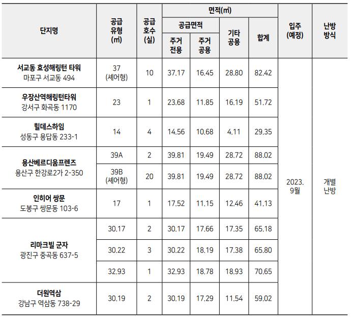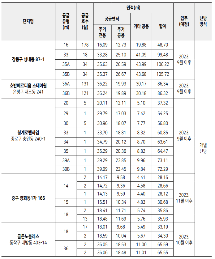 ※ 입주지정기간은 입주 가능한 날로부터 30일 간이며, 동작구 대방동 403-14의 입주일은 10월 이후, 중구 광희동 1가 166의 입주일은 11월 이후로 예정되어 있으니 참고