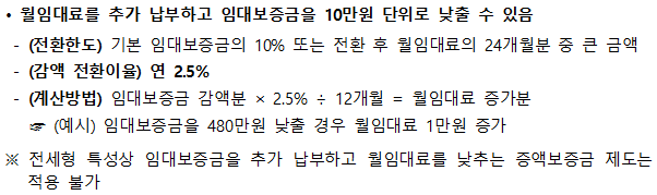 | 임대조건 | 시중 시세의 30~40% 수준의 월세 임대 | 시중 시세의 70~80% 수준의 준전세 |